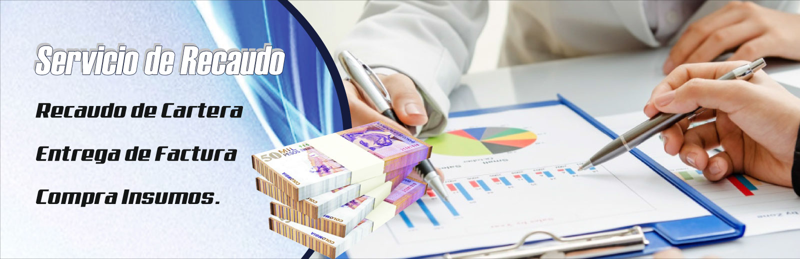 Recaudo de cartera, entrega de factura y compra insumos.